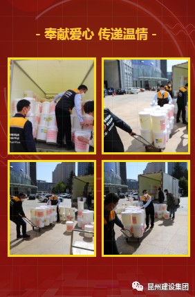2月14日下午2:00,昆州集團員工代表出發(fā),向高新區(qū)疫情防控指揮部運送捐贈物資。