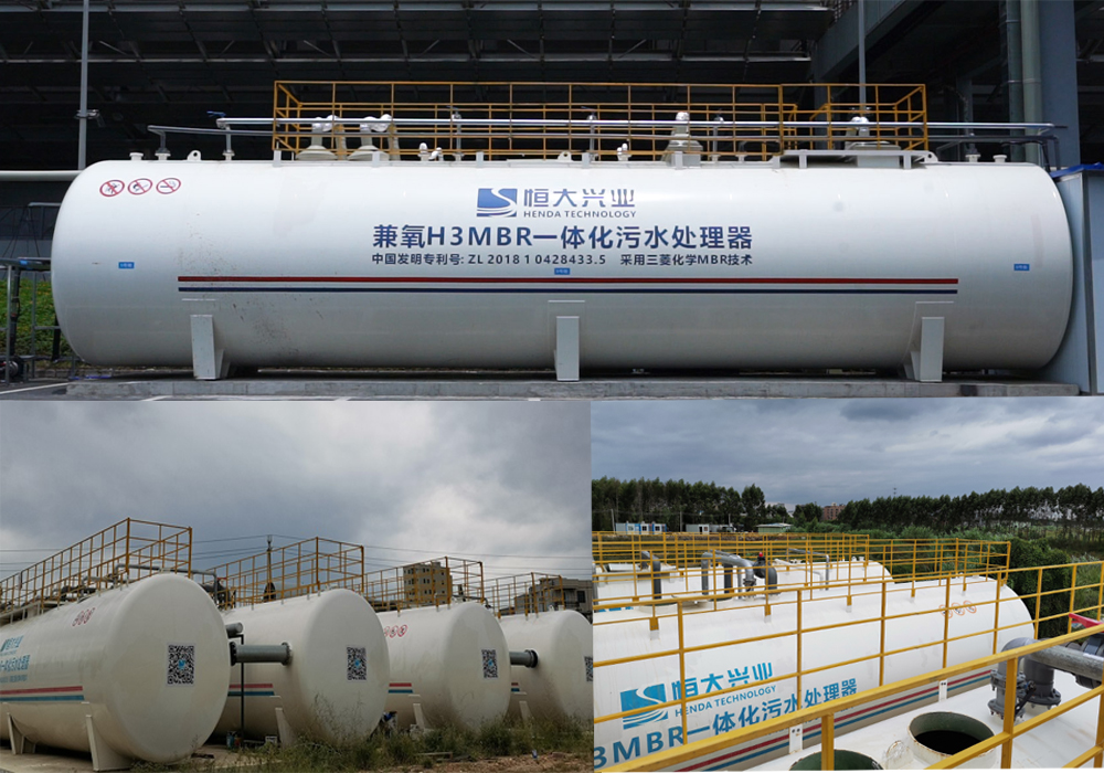 (二)由我司自主研發(fā)的智能兼氧H3MBR一體化污水處理器(中國發(fā)明專利號:ZL2018 1 0428433.5),采用三菱化學MBR膜技術,結合間歇曝氣和間歇進水完成脫氮除磷,去除有機物,并通過三菱化學MBR膜組件進行泥水分離,產水穩(wěn)定達到一級A排放標準。主要應用于市政污水、產業(yè)園區(qū)污水、方艙醫(yī)院、城鎮(zhèn)新農村生活污水等諸多場景生活污水的處理與回用。