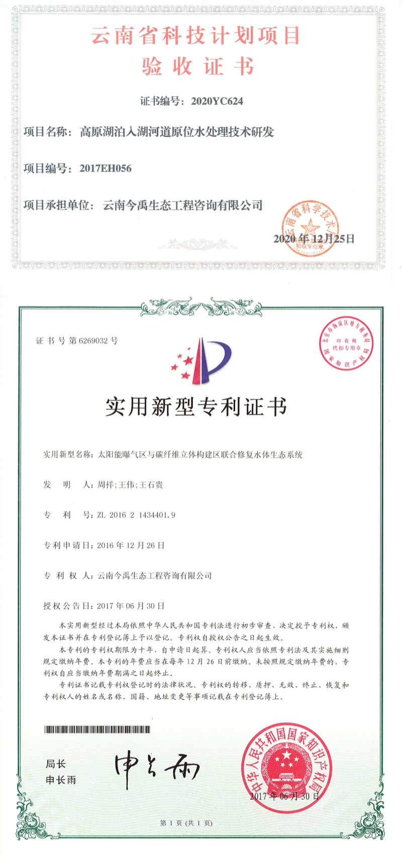 公司先后認(rèn)定為“高新技術(shù)企業(yè)”、“國(guó)家科技型中小企業(yè)”、“云南省科技型中小企業(yè)”、“云南省創(chuàng)新型中小企業(yè)”、“云南省專精特新中小企業(yè)”、“昆明市科技創(chuàng)新型試點(diǎn)企業(yè)”、“昆明市重點(diǎn)科技服務(wù)機(jī)構(gòu)”和“昆明市企業(yè)技術(shù)中心”,通過(guò)ISO9001質(zhì)量管理體系認(rèn)證,是云南省環(huán)保產(chǎn)業(yè)協(xié)會(huì)理事單位,“云南省水土保持學(xué)會(huì)生態(tài)修復(fù)和城市水土保持生態(tài)建設(shè)專委會(huì)”掛靠單位。